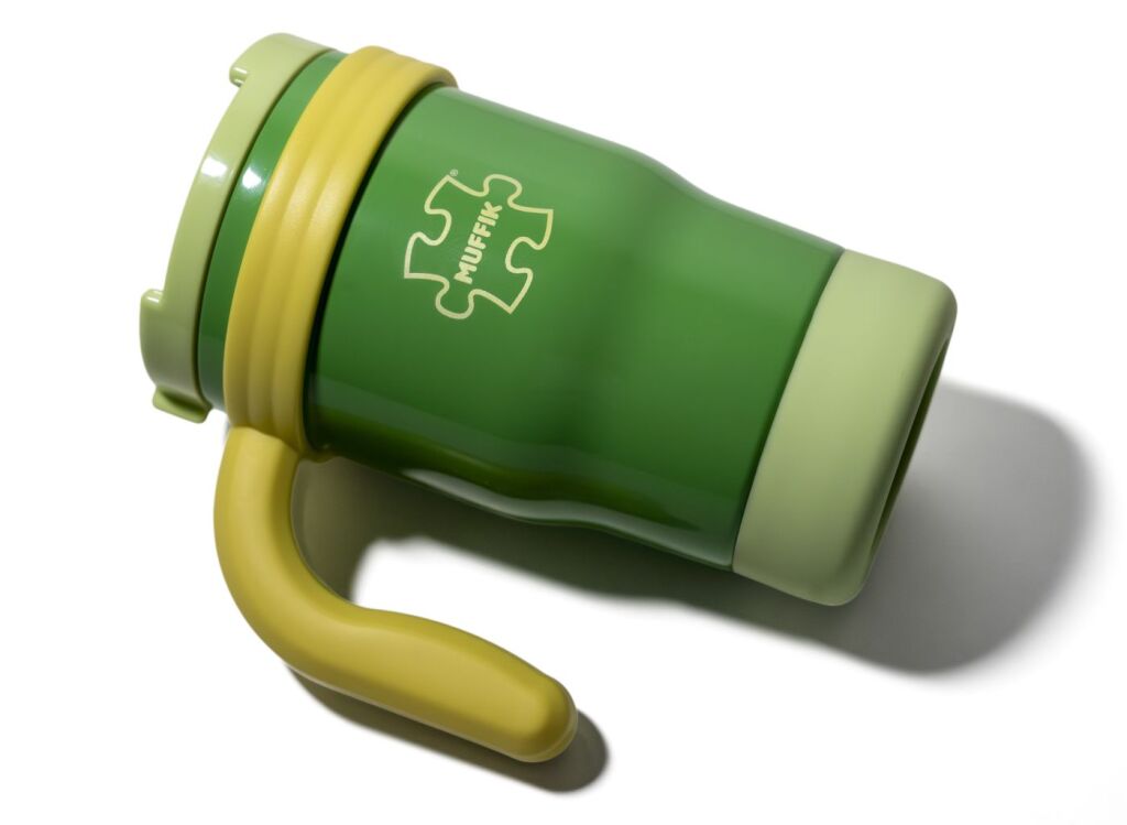 Termohrnek s ergonomickým ouškem a brčkem.