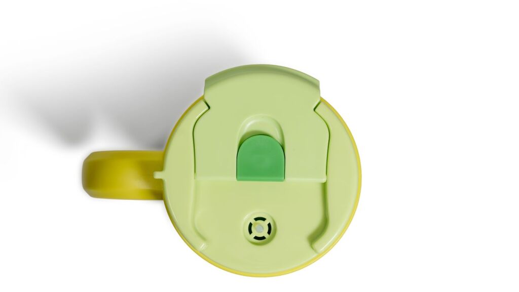Speciální pojistka na víčku proti otevření a vylití obsahu hrnku.