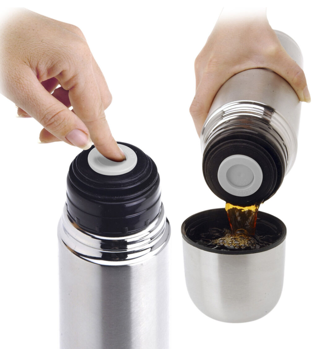 Nerezová termoska o obsahu 0,75 litru.